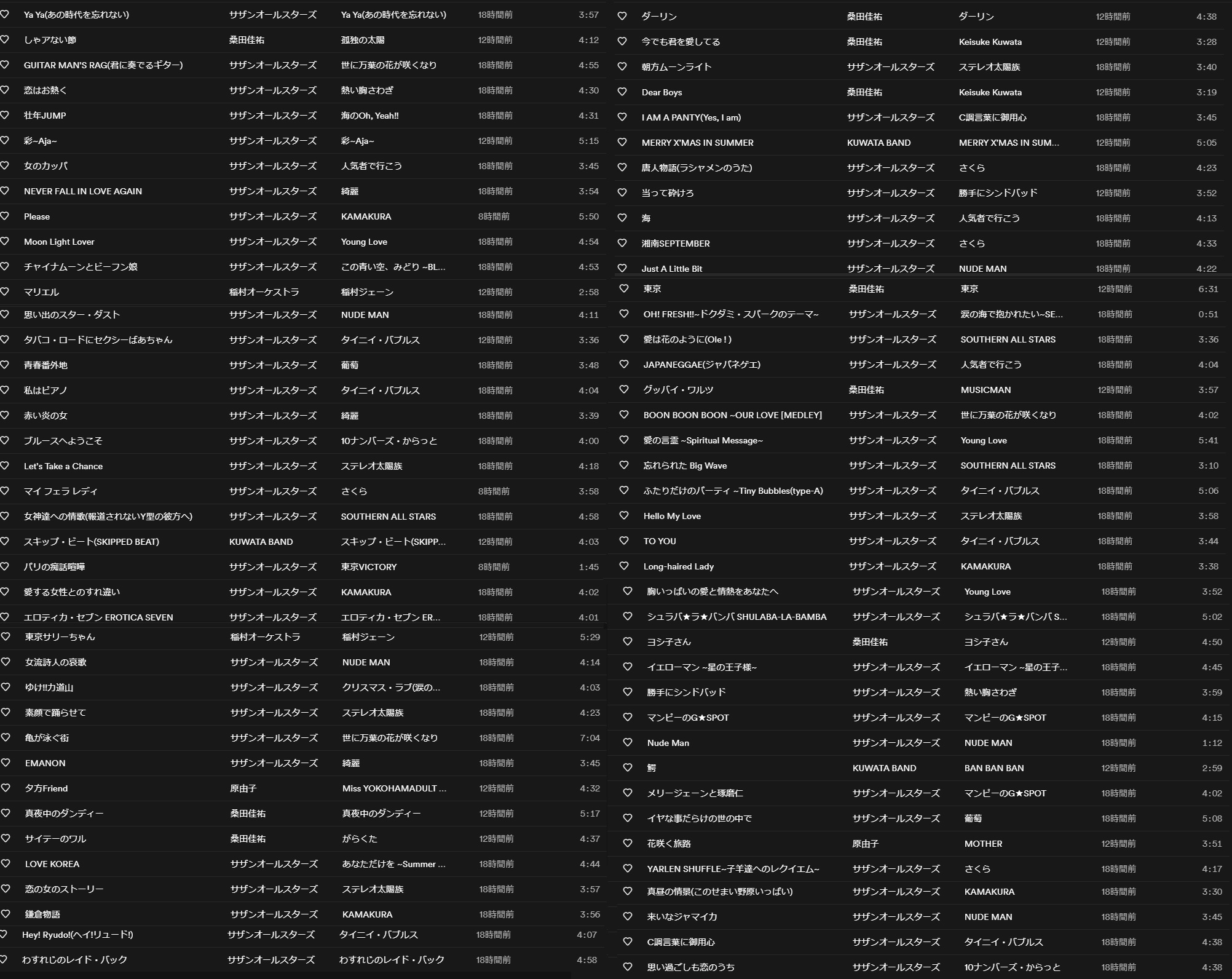 (; ・`ω・´)非常にサザンオールスターズ関連が一気にspotifyとかで公開