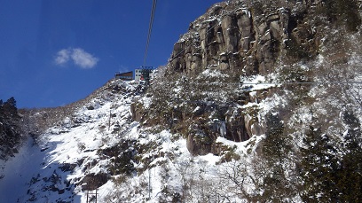 まずは6時発で甲南チケットの自販機で株主優待二枚買い近鉄へ ナスD見て寝不足なんすがやはり目が冴えて寝れず (*`・ω・´*) 非常に心配なのがわしの晴れ男指数が針を振り切ってること 心配は現実化 やはり快晴で暖かかった、雪大丈夫かな わしいつも思うねんけどこんだけ太陽動かせるんやったら古代なら卑弥呼的な何かになってたかもしれん 迷信信じひん系の人にもわしの威力は知られるとこやけ 卑弥呼もあれやし なんか夜露死苦っぽい名前やし、目つき悪いし格好派手やし元は暴走族っぽいやつやったかもしれん だから平民のわしが一気に世界の支配者に昇格ってのも十分アリなわけです(,,・`д´・,,) しかし四日市がちかづくと山に雪が確認された 助かった なんせ四日市ぜんそく発祥の地なので警戒しましたが、空気はよかったです(*´-ω・) 非常に湯の山線に乗ると良い景色が 山にはかなり雪が見えた 菰野出身の西勇輝君は案外なのも小物なんて読みの地出身やからでしょうか(つд;*) バスで10分ほどでロープウェーへ(。・`ω´・。) アクセスは良いです ロープウェー前は非常に人は多かった スキー客や年配団体が多かったです 結構並んだ(*^∇^*) ゴンドラは少々高額さが目立ちましたが仕方ない(・ω・) 強風なのでわし含む一団でいったん中止とかなった タッチの差でセーフやった これはけいばもいいことあるはずで、なければいんちきなわけです でも、こういういいタイミングあってけいばあたったためしなし やっぱり今回もいんちきだったです、はい 割と安心のパラメータでした(´・ω・`; ) 約一時間前に-9度とは言え晴れなので大丈夫さは感じます 非常にゴンドラは案内音声と出発到着テーマ曲つきでよかったです( ・`ω・´) かなり岩が良いのでわし向きの景観でした 非常に周囲が低地の1000m級の山なので良い景観には恵まれます(*`・ω・)ゞ 絶対名前つく系の岩石が多数v(・ε・v) 解説でもいろいろとりあげてくれます 山上は非常に良景観です(*´-ω-) 往復2160円の価値は感じます 積雪70cmのリアルさは確認v(o´ з`o)♪♪ 水をふきつけて作った氷瀑とのこと(*≧∇≦) 巨大であります その水を食らってかなりさぶかったです 昔はつららって結構ふつうやった気がo(*`・ω・´*)ノ ばっちゃん家でもぶっといつららで遊んだもんな 今はいっこもない なかなかの埋まりっぷりヾ(。・ω・。) ずぼおおおおおっって行ったので楽しかった 良木がありますね(´・ω・`) 美麗と言えます゜+。(*´∇`)。+゜ たまに強風が吹くと楽しい風景( ・ω・)y-~ 見事なヒャダルコっぷりに脱帽 ちょっとなんか雪国ぽさあるすよね( o´ェ`o) プチつりばし ほんまプチです 樹氷ってやつぽいです(T . T) なんか家とかで埃たまったみたいになってますね そんなんといっしょにしたらあかんか(*´ε` *) 無残感が半端なし(*ゝ`ω・) 氷のかたまりがついた木もあり、それは触れるだけで落ちます(; ̄ェ ̄) 雪山って意外にカラフル(´;ω;`) 側面にのり巻いたおにぎりのごとし(>人<;) ただしカビがはえている ぼかし気味にするのもよし(*^ー゜) 山頂名物鳥居です(;´・ω・`A そして帰還(U´・ェ・) 良岩が多いのでゴンドラで頑張って良席を取った かなりの角度o(TヘTo) なのにここを登ってる登山家が結構多かったです 粉砂糖まぶした菓子みたいです(。-`ω-) バス停には行きと違うルートで(。・ρ・。) 神社がありました 温泉地は良川があります(*´ω`*) 三重の寒梅に光あれ ここで酒捕獲 てか、湯の山のみやげ屋さんの人はみんないい感じでした(T ^ T) お次はアクアイグニスというインスタ映え屋(。・Д・。) ほぼ敷地がモダンな建造物とスイーツ屋で、温泉が併設されている感じです シェフも複数人いて、土産も化粧品とか ヨガ教室、畑もあり、有機農法を売りにした健康に気を遣う若い女性向けの雰囲気ビンビン おっさんのわしとしてはHPも見たらめまいがします まあいてもたってもいられず温泉へ 中も完全にインスタ映え やばいです、まぶしくて死にそう(=゜ω゜)ノ 温泉のほうはシンプルな浴槽の内湯(*’ω’ノノ゛☆ 香りはほのかでちょうどいい金属7硫黄3 適温の湯はぬるとろ感が軽くまとわるよう 包まれるみたいです 肌にすりつける動作をみんなしているすばらしさが半端なく尋常じゃない湯といえます HPでは竹林が美しい感ですが、あそこまで密度ないです でもまあ、良いのは良いですが ガラスに水滴もつくすしね(((o(*゜▽゜*)o))) 露天は寒いですが行ったm9っ´・ω・`) まずはふつうの浴槽は外気にふれたためにぬるめでちょうどいい そして二つ目は寝そべり形式 これがまた最高ですね ずらずら多数寝そべりながら肌に湯をすりつけるさまはまるでカルト宗教儀式 まあ、これは仕方ないですよ 自然な行動です アクアイグニス教徒にならわしもなります すべてをささげます(*´・ω-)b かくしてアクイグ教徒になったわしは木樽の風呂へ やはり香りがよいです そして湯の色も木の色に合っていて金色に見えるほど あと、普通の露天の浴槽以外は底面から湯を供給